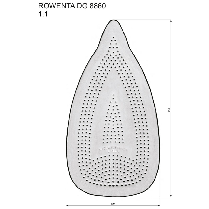 Small holes on perforated surface insure steaming on whole surface of iron and version with big holes, grant direct staming from iron, but without dangerous contact with hot iron plate.